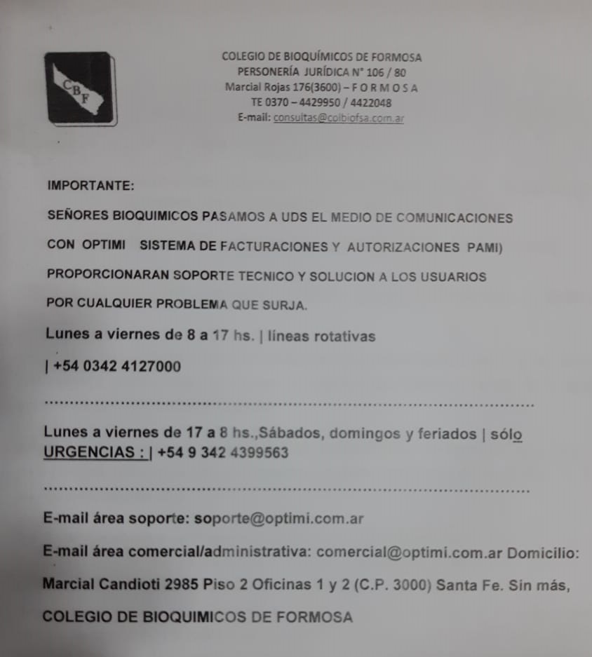 IMPORTANTE: OPTIMI COMUNICANION SOPORTE